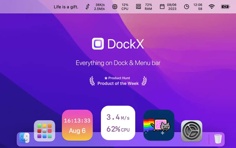 DockX 是一款实用且趣味性十足的 Dock 增强工具,将系统信息、时间提醒与娱乐内容轻松整合进你的 macOS Dock 和菜单栏中,提升效率又不失个性。