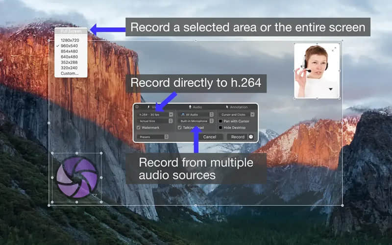 iShowU Studio是一款Mac上强大的高清屏幕录像软件,除了支持普通的屏幕录像外,还支持同时录制屏幕和摄像头,方便我们制作视频教程、课程讲解、网页演示、游戏录制等等。