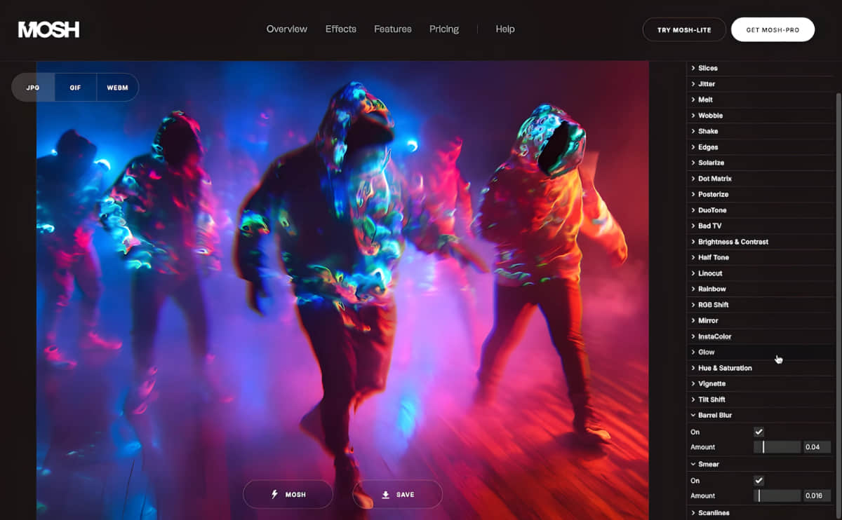 Mosh-Pro 是一款集实时预览、音频同步和高分辨率导出于一体的强大视觉创作工具,特别适合制作故障艺术(Glitch Art)和动态视觉效果。