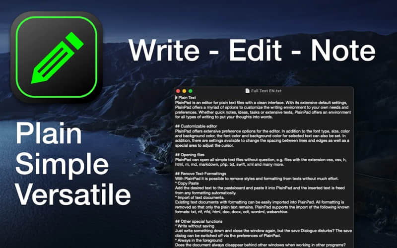 PlainPad 是一款简洁的纯文本文件编辑器,提供干净的界面和丰富的默认设置,允许用户根据个人需求和偏好定制写作环境。无论是快速笔记、创意构思、任务清单还是长篇文本,PlainPad 都为各种写作提供理想环境,助您将思维转化为文字。