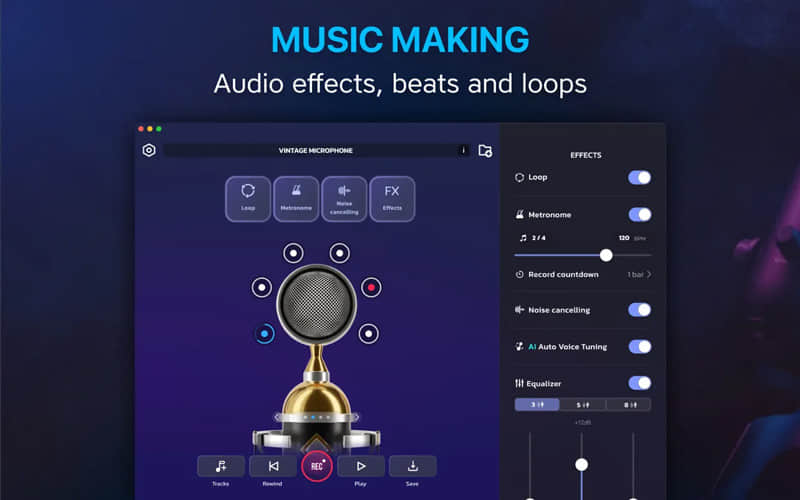 Professional Microphone 是一款适合初学者和希望让自己声音被听见的用户使用的麦克风模拟与录音工具,让你的 Mac 成为便携的专业录音室。