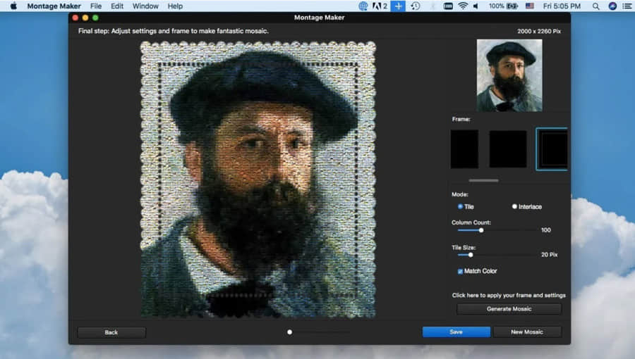 照片马赛克的输出如何?该程序可以结合超过2,00马赛克瓷砖在一个惊人的结果,高达16,000像素宽度和蒙太奇照片无限像素高度,马赛克照片或照片拼贴画WidsMob Panorama可用于壁画,横幅,桌面,甚至壁纸。